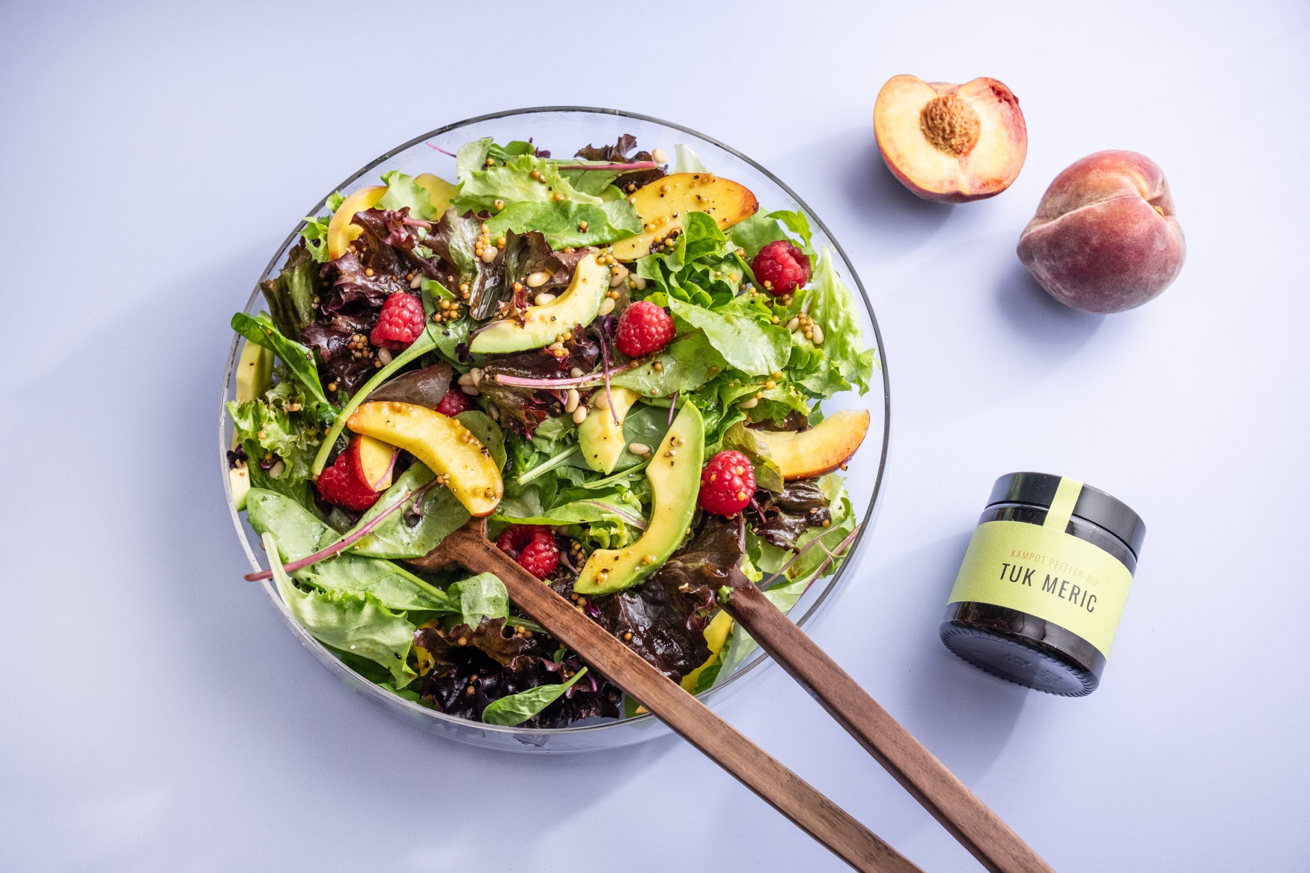 Eine Kombination aus cremiger Avocado und saftigen Himbeeren verleiht diesem sommerlichen Salat eine besondere Frische. Die süß-säuerlichen Noten der Beere vertragen sich ganz besonders gut mit der zarten Textur der Avocado und schaffen ein harmonisches Geschmackserlebnis, das nicht nur optisch überzeugt, sondern auch voller Nährstoffe steckt.