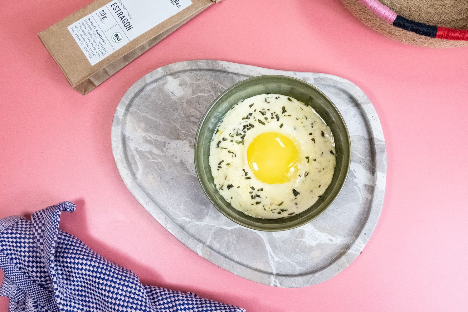 Oeufs cocotte mit Estragon sind ein französischer Klassiker: cremige Eier, aromatischer Estragon und Crème fraîche – Das haute-cuisine-upgrade für Frühstück und Brunch.